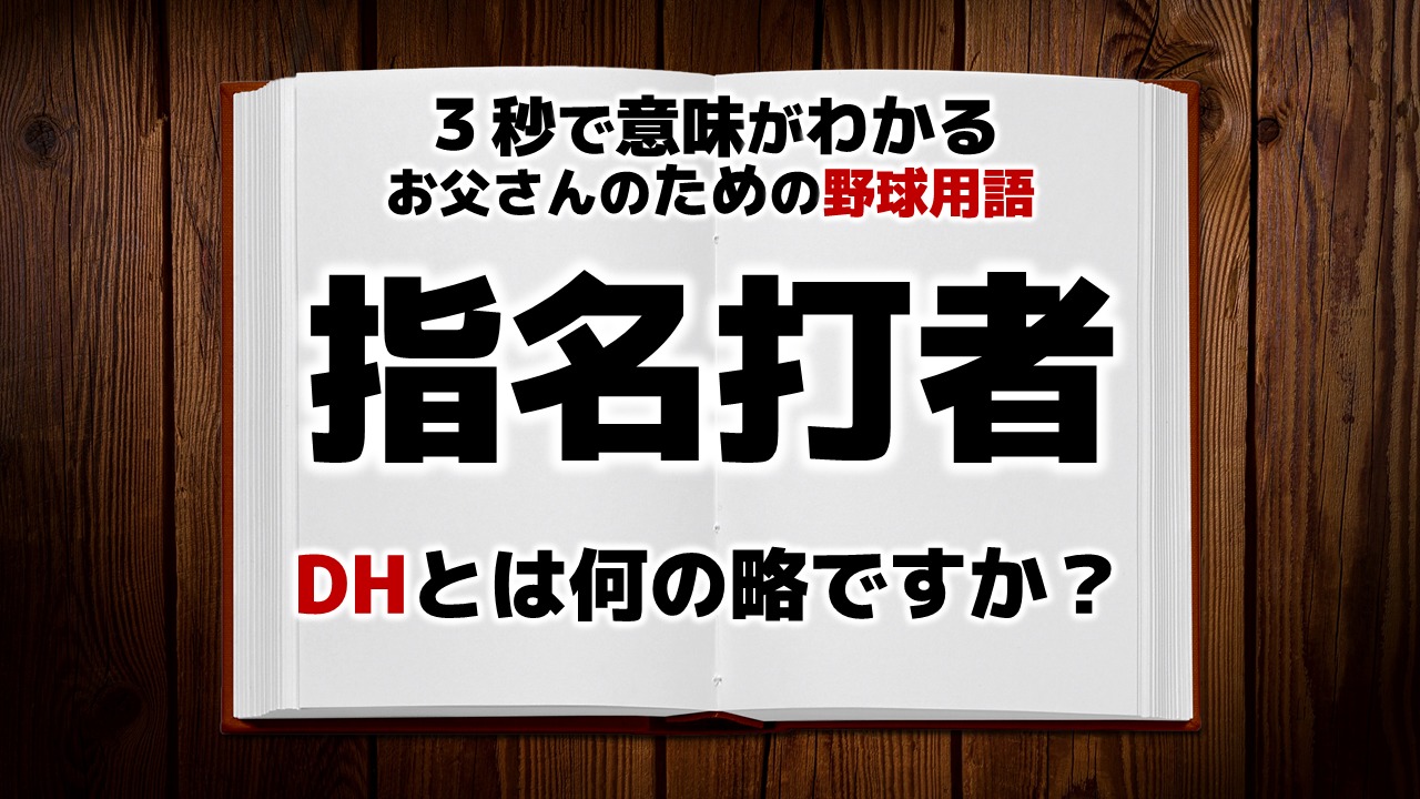 指名打者とは、野球における役割のひとつで「攻撃専門の選手」という意味です。英語では、「Designated Hitter」とよんだり、その頭文字をとって「DH」とよんだりします。
